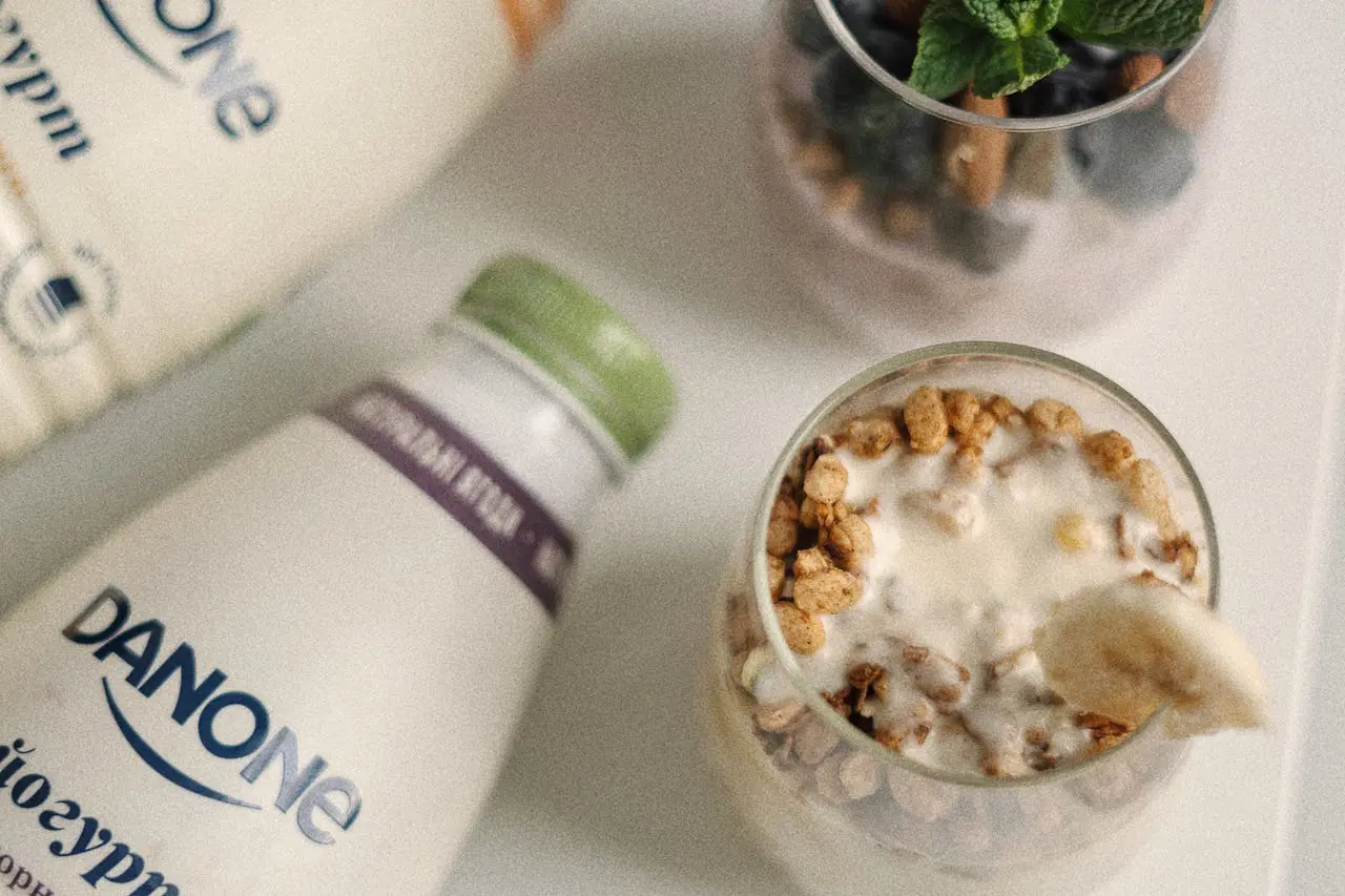 - Jogurt naturalny z mieszanką świeżych owoców sezonowych i łyżką miodu.